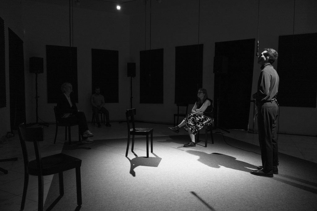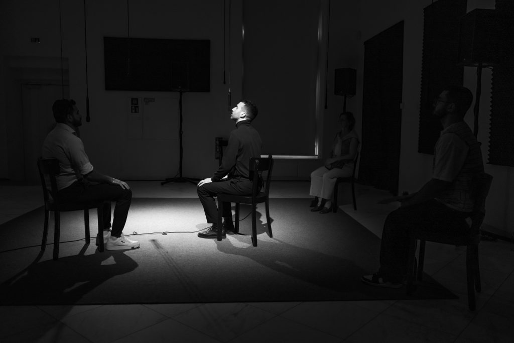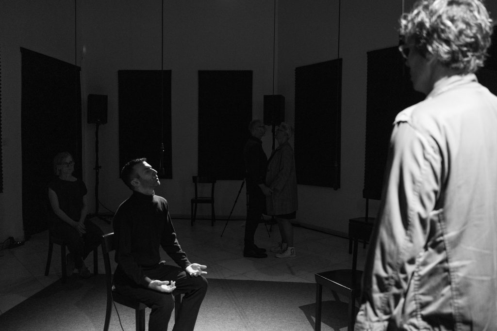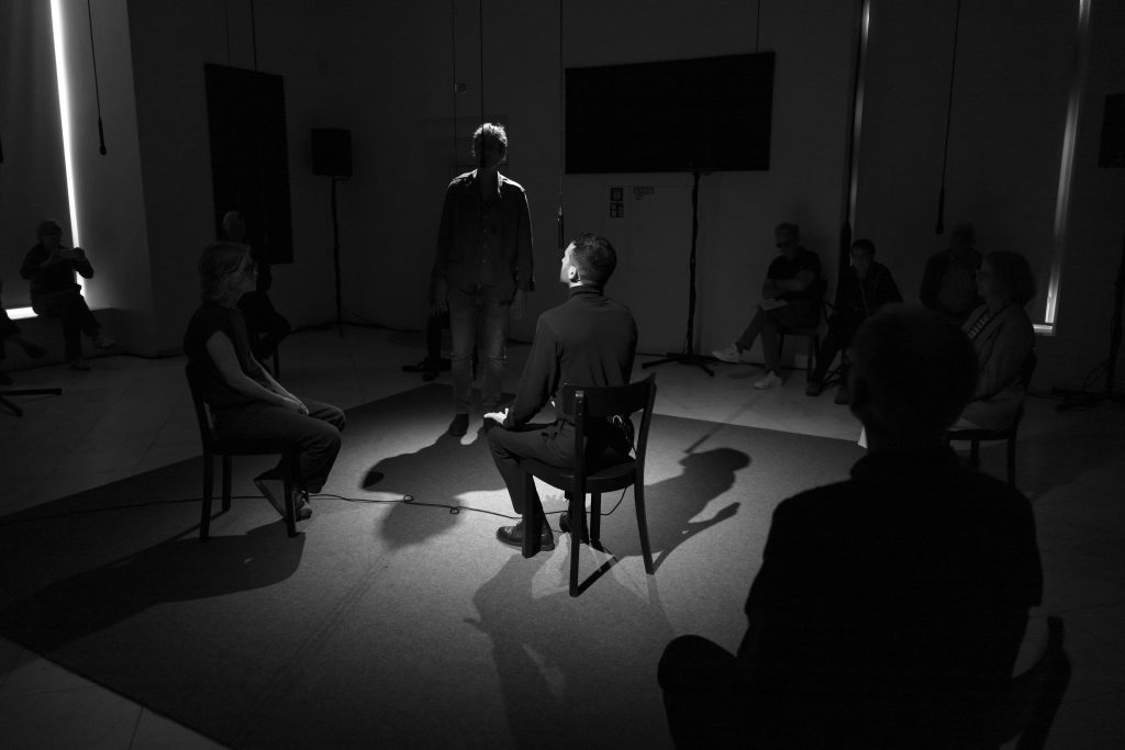 Pneuma means both “breath” and “soul” in Greek. The performance reflects on breath as a carrier of identity, a communicative potential, and a mirror of the macrocosm. Breath is as essential to our life as it is fragile – it can be hindered or suppressed, as demonstrated by pandemics or methods of violence and oppression.Inspired by Joseph Beuys’ participatory art concepts and his “energy plan” as well as by the breathing practices of the Marina Abramović Method, the project sees itself as an artistic-social experiment, a sensual and political invitation to attend to breath as a “primordial sound”, the most reduced form of togetherness, and the most elemental form of relating to the world.